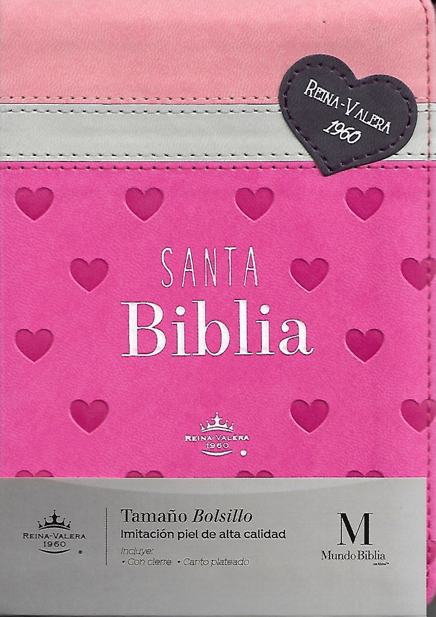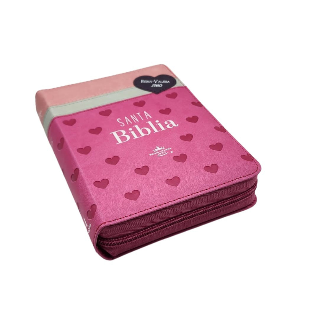 BIBLIA RVR1960 CON CIERRE TAMAÑO BOLSILLO - CORAZONES (TAPA IMITACIÓN PIEL)