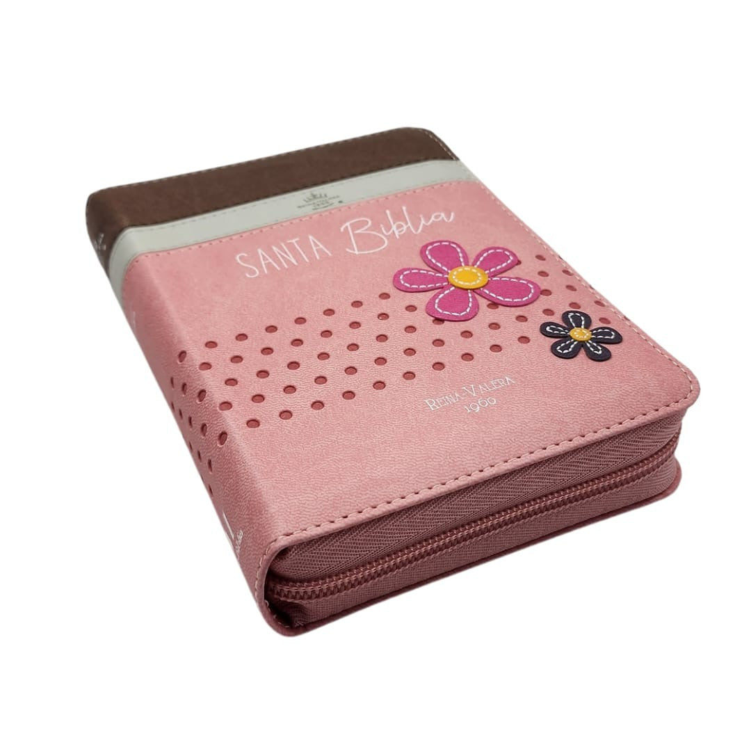 BIBLIA RVR1960 CON CIERRE TAMAÑO BOLSILLO - FLORES (TAPA IMITACIÓN PIEL)